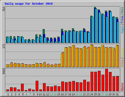 | Day | Hits | Files | Pages | Visits | Sites | KBytes | ||||||
